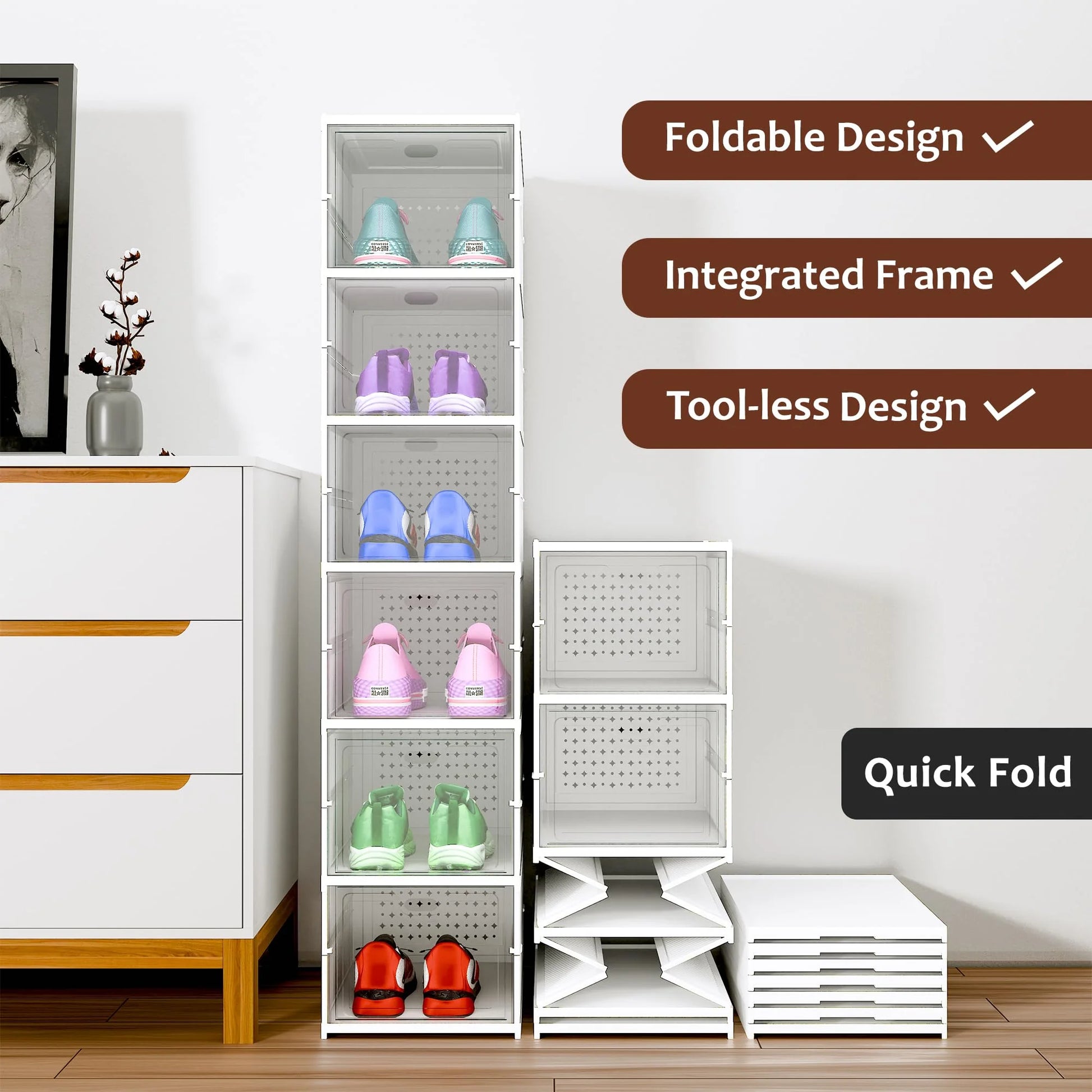 Compact aur foldable design, yeh 4-layer shoe stand entryway ke liye perfect hai—durable plastic, easy to assemble, space-saving!